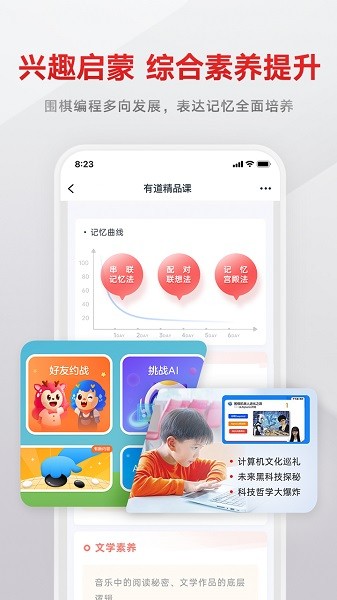 学习和体育训练一样,都需要好老师的指导、科学的方法和反复的练习,才能取得好成绩。有道精品课是专注直播双师业务的在线教育品牌,牛师授课 科学教研 AI技术,高效实现因材施教。有道精品课涵盖科学、文学、编程、围棋、国际象棋、脑力、表达、美育、升学讲座、学习规划等青少年素养品类,助力孩子构建立体的能力模型,培养探索兴趣,从理解和实践获得多方面成长。精品课程和丰富资料免费领。双师互动直播,课后老师贴心辅导。AI指导个性化学练测评,多维度学习报告全面分析学习情况。