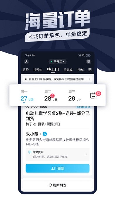 订单管理、日程安排日历展示更清晰,帮助师傅规划行程路线,提升服务效率,更省时间。