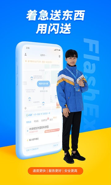 闪送员从您那里取件后,直接送达到您指定的目的地,无任何中转环节,真正即取即送。