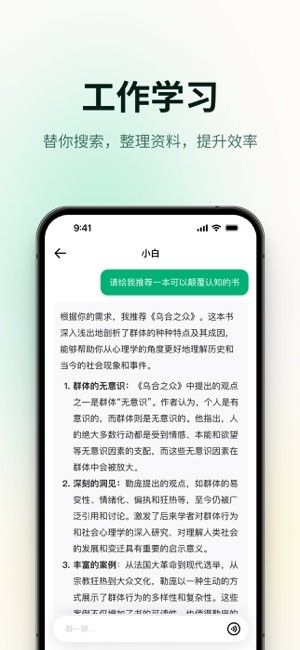 问小白手机版是一款提供ai智能助手的问答搜索工具,适用于多种场景,适合不同人群使用。能够提供全方位的服务,功能强大,满足你的工作学习需求,一键智能搜索,在线问答,高效阅读,不断探索发现,深入洞察和分析,提升效率!