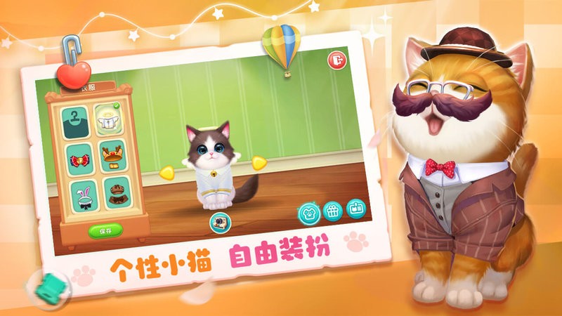 给猫咪穿上各色服装,给猫咪洗澡,以及沉浸式的抚摸你所有的猫咪。