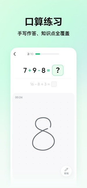 -- 更高效的口算练习,在线手写作答,自动批改,覆盖各年级知识点;