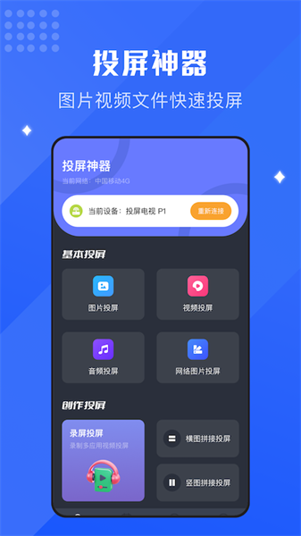1、极速投屏,随时能够很快速的投屏设置,并且很好的体验多种运营模式。