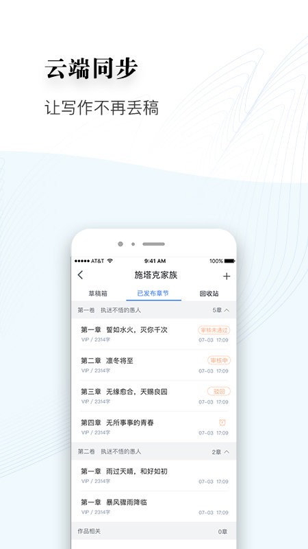 作为一个偶尔写点东西的人,我觉得这个App真的很实用,特别是云端同步功能,手机和电脑内容随时都能保持一致,完全不用担心数据错乱。而且它还提供写作技巧和编辑咨询,对新手特别友好!如果你也喜欢写作或者正在连载小说,真的可以试试这个工具,绝对能提升你的创作效率!