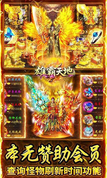 雄霸天地手游是一款单职业超变复古传奇手游。游戏重现经典热血杀戮场景,满攻速、高爆率,小怪也有机会掉落顶级装备。支持离线自动挂机,玩家离线也能提升等级与获取经验。其自由交易系统十分便捷,装备可回收、能交易,助力新手和散人玩家创造财富。沙巴克争夺战、大逃杀等多样刺激玩法,让你身临其境感受热血。在这里,你能重温传奇经典,与兄弟再聚沙城,开启热血征程。