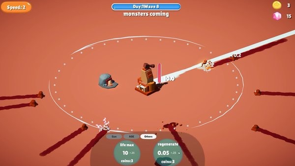 1、升级自己的实力,抵挡敌人的入侵,发挥你的聪明才智,击败多多对手。