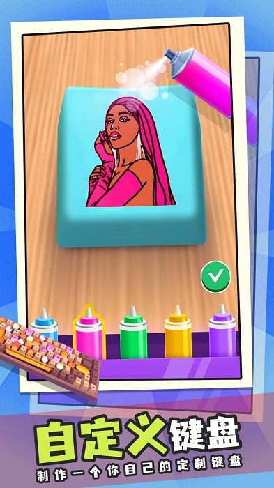 diy键盘最新版是一款手工制作键盘游戏,游戏为大家提供了很多可以制作键盘的道具,使用颜料以及花瓣等物品贴在键盘上,组合成好看的装饰让键盘充满趣味。