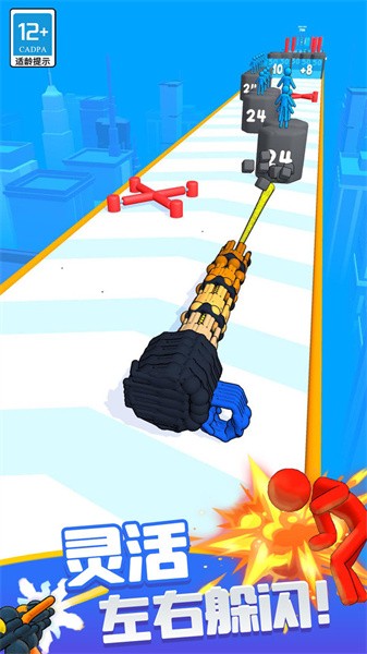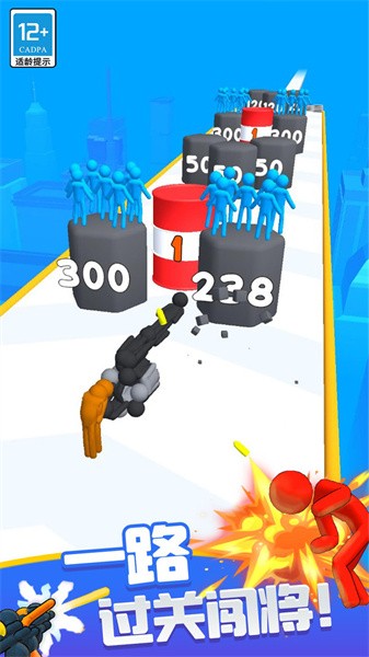 3.跑酷玩法造型有趣,游戏中在跑酷的玩法之外,让小人变身枪支的造型,酷炫又有趣,让游戏的玩法更加丰富。