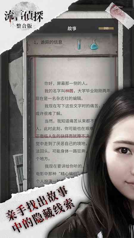 创新的游戏类型。将侦探小说的阅读体验和互动游戏结合。《流言侦探》深刻复杂的故事。专门为此游戏原创的30w字长篇侦探小说,传统连续杀人事件推理故事。结合十余位主要角色的人生故事刻画。