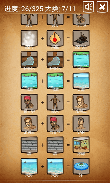 这款游戏简直太有趣了!它的玩法简单到离谱,就是随便选两个东西合成一个搞笑的结果。比如“土”加“水”居然变成“人”,这脑回路我服了。更绝的是,“男人”加“男人”居然等于“哲学”,笑得我肚子痛。