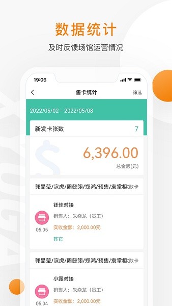 5.课程表、预约状况、耗卡情况等查询,多场景服务提醒,营业状况监控;