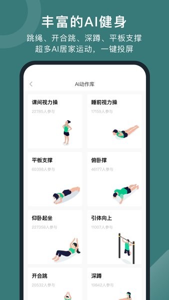 跳绳、开合跳、深踔、平板支撑,超多Al居家运动,一键投屏