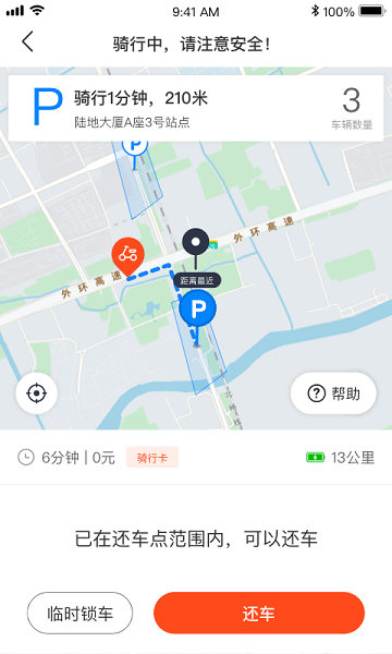 2、更便利-手机扫码开锁,无固定车桩,路边白线内还车,方便省心;