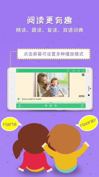 1、点读精学:图片+文本方式展现,可以逐句点读,在“入迷”的情境中学习。