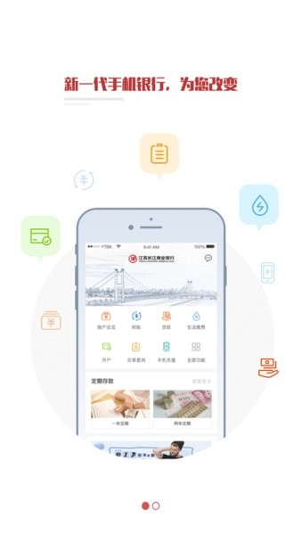 江苏长江商业银行手机银行为用户带来更多的移动金融服务,丰富的软件功能让用户可以体验更多的掌上银行功能,用户在这里随时都可以查看自己的存款和银行的年利率。