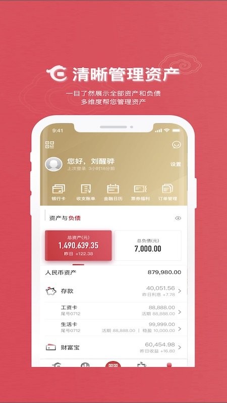 可一目了然的为客户展示自己在华夏银行的资产净值、总资产值及负债信息,方便客户对自己的资产进行管理。