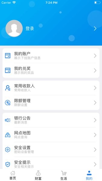 辽宁省农村信用社手机银行为个人量身打造的掌上金融服务平台,可让您随时随地享用银行服务,如账户查询、转账汇款、我的信用卡和预约取款等。此外,简洁流畅的UI设计,为您提供优良的使用体验。我行手机银行采用了多重密码保护机制,加以手机动态密码多重认证,保障您的交易资金安全。