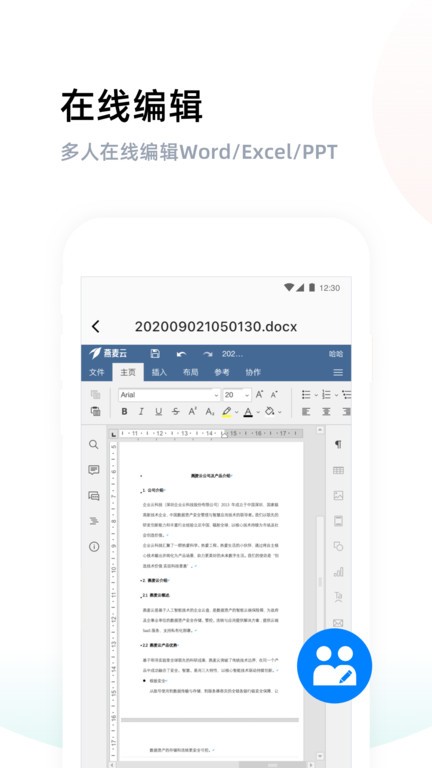 在线编辑: 多人在线协同编辑Word/Excel/PPT,支持在线演示PPT。