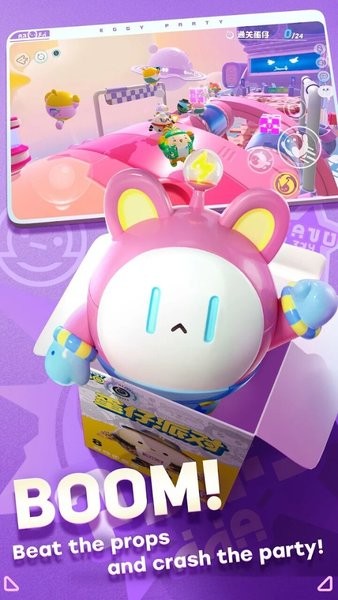 蛋仔派对国际服官方正版安装包免费领蛋币中文版,欢迎来到超级派对游戏D一eggy go!让我们跟随蛋形华夫饼旋转,跳跃,滚动,加速并突破各种梦幻般的关卡!跳跃和滚动,让我们开派对吧!