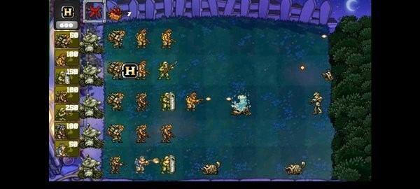 《植物大战僵尸合金弹头版》是一款结合了《植物大战僵尸》和《合金弹头》的经典塔防游戏。游戏中,所有的植物都被替换成了合金弹头中的角色,带来了全新的玩法和体验。游戏加入了各种新的僵尸类型,比如塑料僵尸、铁桶僵尸和冰车僵尸等,每个僵尸都有独特的技能和特点,让玩家在策略布局时需要更多思考。