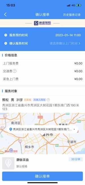 3、 订单接受,护士确认服务可提供后,确认接受服务订单。