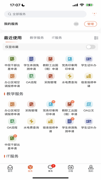 多种实用校内应用,涵盖学工应用、教务信息、生活服务、学习工具等方面。