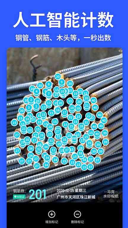 工程:专业工程水印包含多种场景,人工智能计数,钢筋钢管木头等一拍出数,一秒制作监理日志、施工汇报。