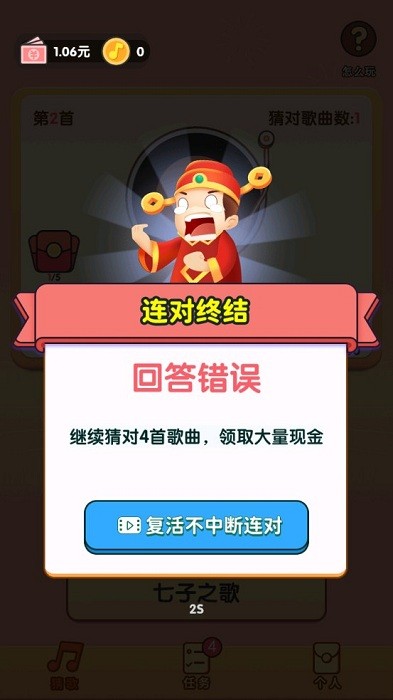 通过聆听歌曲片段,选择你认为正确的歌曲名称,答对即可通关。
