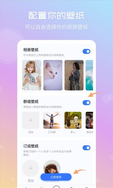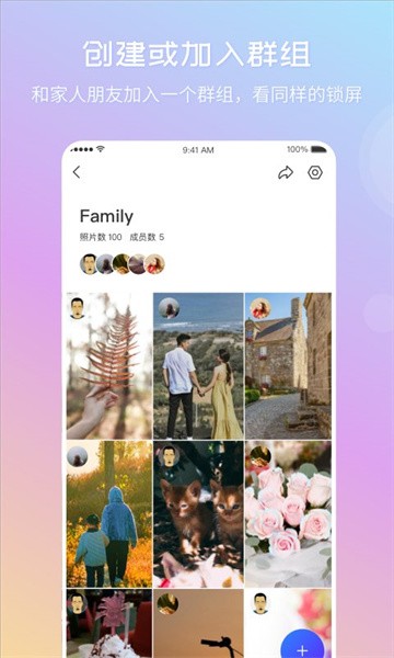 创建或加入属于你们的专属群组,群组里面的壁纸将在你的锁屏上自动更换。
