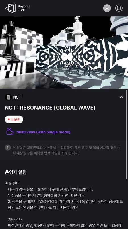 “Beyond LIVE”作为 SM娱乐推出的最适合线上的世界首个“线上定制型付费演唱会”, 由通过利用具有压倒性的表演、尖端AR技术与实时3D图像技术打造出的生动感十足的舞台演出, 多元化、差异化的摄像机走位,艺人与全球粉丝们进行实时视频通话的互动沟通等的丰富多彩的舞台构成。