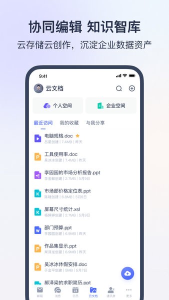 云盘支持多端协同,多格式文件的高速上传、下载及预览,打造触手可及的知识智库,移动办公更轻松。
