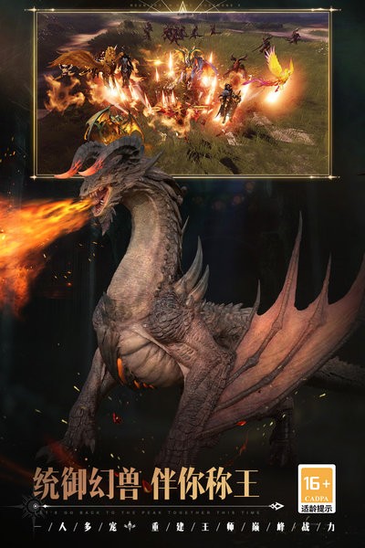 经典幻兽,千变万化,个性迥异的千百种幻兽任你培养,陪你一起成就帝王大业。更有专属独享尊贵坐骑,尽显王者风范,在幻兽们的陪伴下,你将踏上一条无人能敌的王者之路!