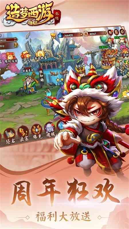 《造梦西游外传》是一款以西游记为背景的回合制手游,结合了魔幻元素和冒险竞技玩法。玩家可以化身齐天大圣或其他经典角色,在取经路上挑战各种妖魔鬼怪和BOSS。游戏创新地融入2D横版MOBA模式,支持多人团队竞技,还有丰富的剧情任务和联机玩法。你可以自由搭配英雄、技能和装备,体验炫丽的连招击杀。每月更新的新英雄和时装系统让游戏保持新鲜感。背景故事改编自原著,讲述了悟空阻止六耳猕猴篡取真经的故事。画面精美,动作设计酷炫,还有养成系统如翅膀、神器等丰富玩法。总的来说,这款游戏结合了经典西游元素和创新MOBA玩法,适合喜欢横版战斗和策略竞技的玩家。如果你是西游迷或MOBA爱好者,这款手游绝对值得一试!