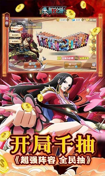 草帽团、七武海、四皇、海军大将 100+ 角色全登场,立绘 1:1 动漫原画。
