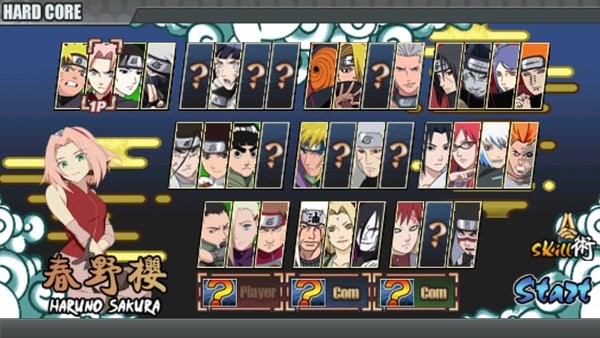1、打开火影战记后,选择练习模式进入游戏,来到人物选择界面,选择好角色后,点击Start开始游戏;