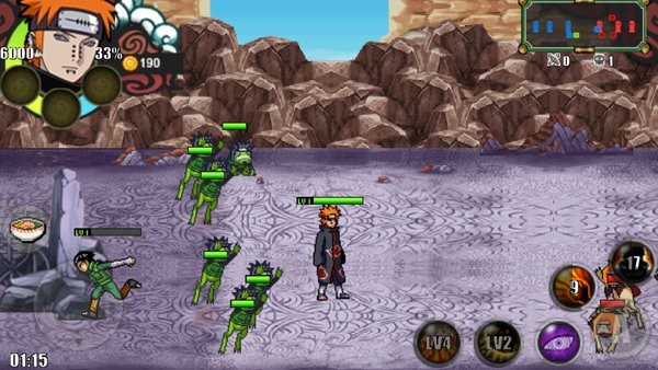 火影战记原版1.17官方正版是最经典的版本,之后的火影战记1.22、1.20、1.19等都是基因1.17制作的,包括新出的各种美化版、改版等。游戏中的角色全部是动漫火影忍者中的人物,还还原了忍术;玩家选中一个角色,和队友一起推掉对面的防御塔就可以获胜。