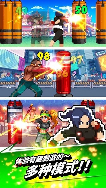 这是一款经典像素画风的格斗游戏,酷炫华丽的招式等你施展,连贯的操作玩法,让你不断的突破自己的极限,完成更高难度的挑战,武技更进一步,拳打天下游戏拥有丰富的挑战关卡,逐渐的完成各种任务,升级你的实力,参加比赛跟其他的对手进行角逐,取得战争的胜利。