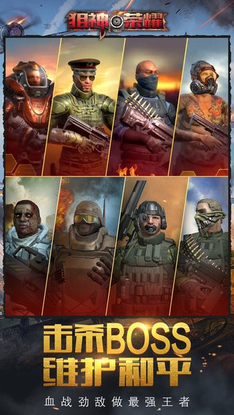 狙神荣耀之致命狙击游戏绚丽的3D场景,容易上手的操作。种类繁多的酷炫武器装备,众多的关卡,丰富的模式,让你欲罢不能。玩家可以在宏大的室外场景狙杀或惊心动魄的进行室内近距离火拼,带着心爱的武器装备,随时引爆最华丽的手游枪击战斗,更可以随时真人PK对战,试看谁才是这世界上不败狙神!快来加入狙神荣耀之致命狙击,感受无与伦比的射击体验吧!