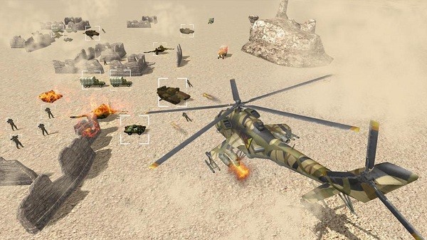 2、享受不同的射击作战技巧,你可以控制直升机来进行诸多的飞行
