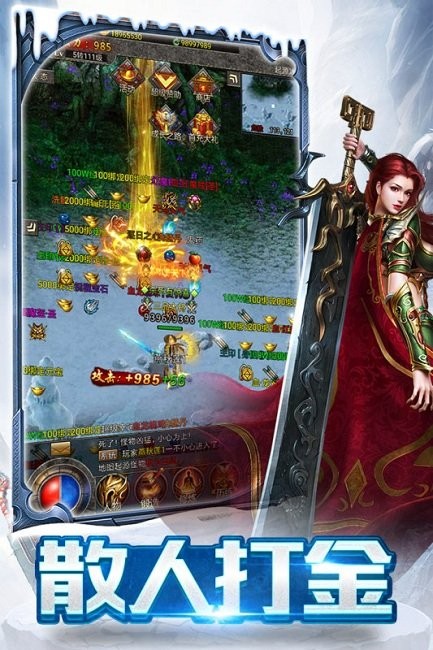 1、自由的pk夺宝,群殴boos,满屏掉落神装,丰富的游戏关卡,海量经验等着你来领取。