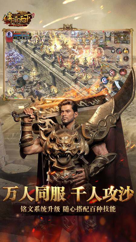 盛趣游戏研发,采用虚幻4引擎的传奇类手游《传奇天下》,在追求更高品质的同时,保留了传奇系列战法道三职业、pk爆装、行会攻沙等经典元素!得益于精进的画面提升与千百种铭文搭配,匠心打造出多人同屏、如临其境的沙场体验。致力让众多传奇老兵重聚原味玛法,再燃热血轻狂!