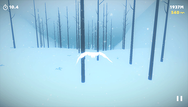 《白色旅途 White Trip》是一款画风唯美的休闲游戏。游戏采用了主观视角,点击屏幕向前移动,拖动鸟儿躲避建筑物和黑色的同类。游戏拥有非常棒的视觉效果,但对时间的限制有些苛刻,积累到一定的分数可以解锁更多的场景。