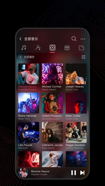 4、支持全部歌曲,专辑(按音轨号排序),艺术家,风格,文件夹,自定义列表等分类播放。