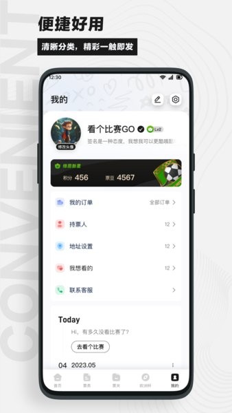 看个比赛直播app是一款专门用于购买体育比赛门票的软件,提供了足球、滑雪、乒乓球、橄榄球等多种体育赛事的购票服务,手机上随时随地可以买去现场看比赛的门票,价格有一定的优惠;并且是官方门票,拒绝黄牛票,放心购买。