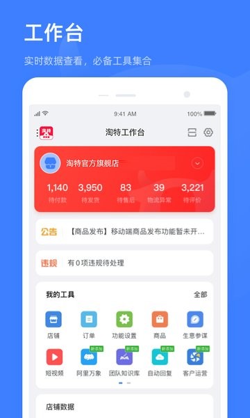 阿里巴巴官方出品的卖家移动工作台,专属服务淘宝特价版商家用户,商家管店必备!致力于为商家解决经营难题,提升经营效率。