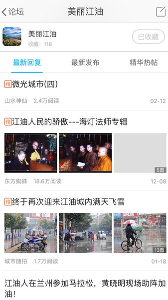 江油论坛最新版是江油人本地官方使用的论坛社交平台,这里有最新新鲜热门的本地热点和头条新闻,可以随时浏览了解,快速阅读内容,还汇聚众多江油人朋友,大家可以自由交流,在线发帖、回帖,覆盖衣食住行购等多个方面,带来全新的便民服务,满足用户需求!