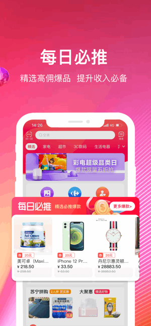 苏宁推客app汇集来自苏宁易购上的各类优质商品供大家选购;为您汇集热卖和最具推广价值的单品,高收益高回报;通过将商品进行推广、分享就能获得源源不断的收益。
