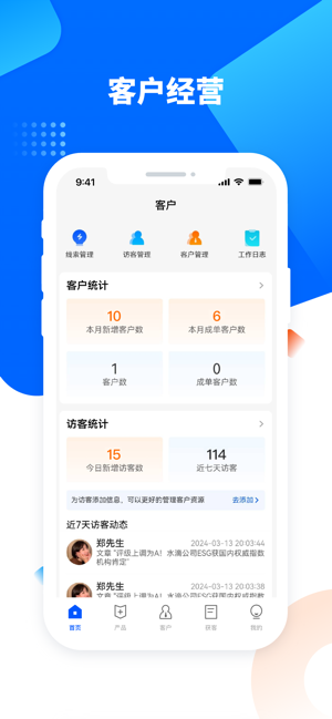 我们提供线索管理、访客管理、客户管理、工作日志等全方位客户经营工具,帮助销售人员实现客户信息的精细化管理,提升客户服务质量和效率。