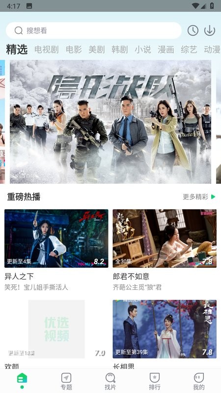 优选视频最新版本是一款很火爆的免费看剧软件,能为你带来超多优质的剧集资源,帮助用户可以实时的进行追剧,您可以自由的进行观看自己喜欢的影视内容!