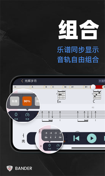 软件还有好多亮点,比如变调即变谱的功能,随便改调都能自动生成和弦和指法,这对于喜欢尝试不同风格的人来说真的很方便。乐队功能谱也很实用,和声显示清晰,还能任意转换调式,感觉像是有一个专属的音乐老师在旁边指导一样。